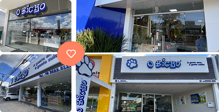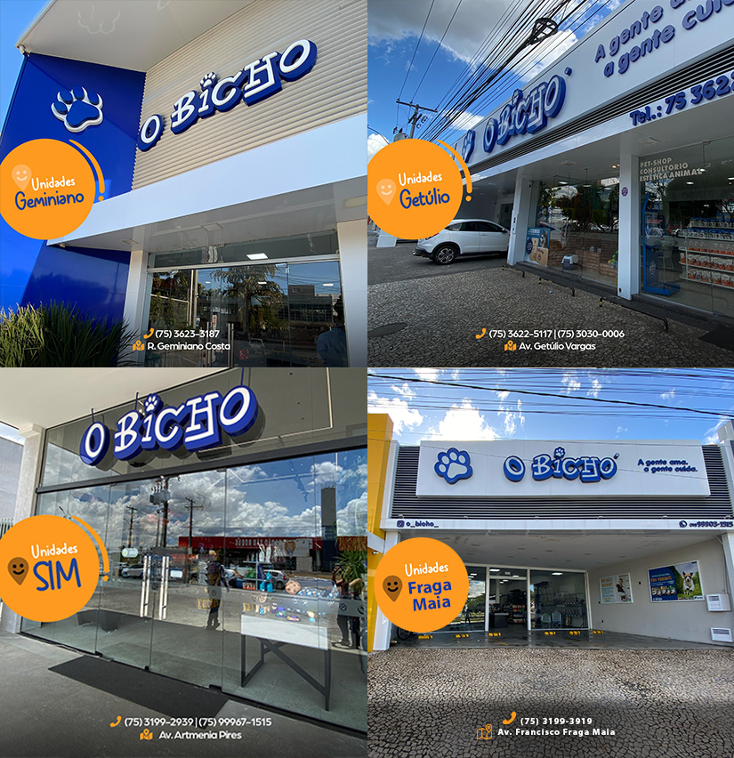 O Bicho esta presente no mercado de Feira de Santana desde 1997 atuando na área de Medicina Veterinária e referência em toda Bahia. A primeira loja localizada na Rua Germiniano Costa, 188-B no Centro da cidade, a segunda na Av. Getúlio Vargas, 2.451 no bairro Santa Mônica, a terceira na Av Artêmia Pires,Alameda Artemis S/N loja 11 e a quarta está na Av. Francisco Fraga Maia, 5200 - Cidade Nova, Feira de Santana.